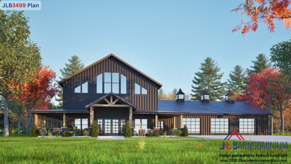 A grand farmhouse with space, charm, and modern comfort — meet Plan JLB3499. This two-story home offers 3,499 sq. ft. of heated living space with 4 bedrooms, 3.5 baths, and versatile spaces like a pantry, office, laundry area, safe room, and mechanical room. Enjoy 1,730 sq. ft. of porches for outdoor living and a 1,941 […]