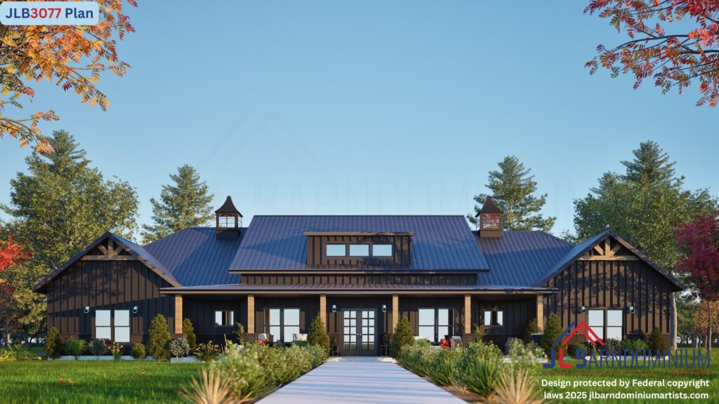 A stunning home that blends modern design and family functionality — meet Plan JLB3077. This one-story home offers 3,077 sq. ft. of heated living space with 4 bedrooms, 3 baths, and versatile spaces like a pantry, office, laundry area, and playroom. Enjoy 804 sq. ft. of porches perfect for relaxing outdoors and a 3-car garage […]