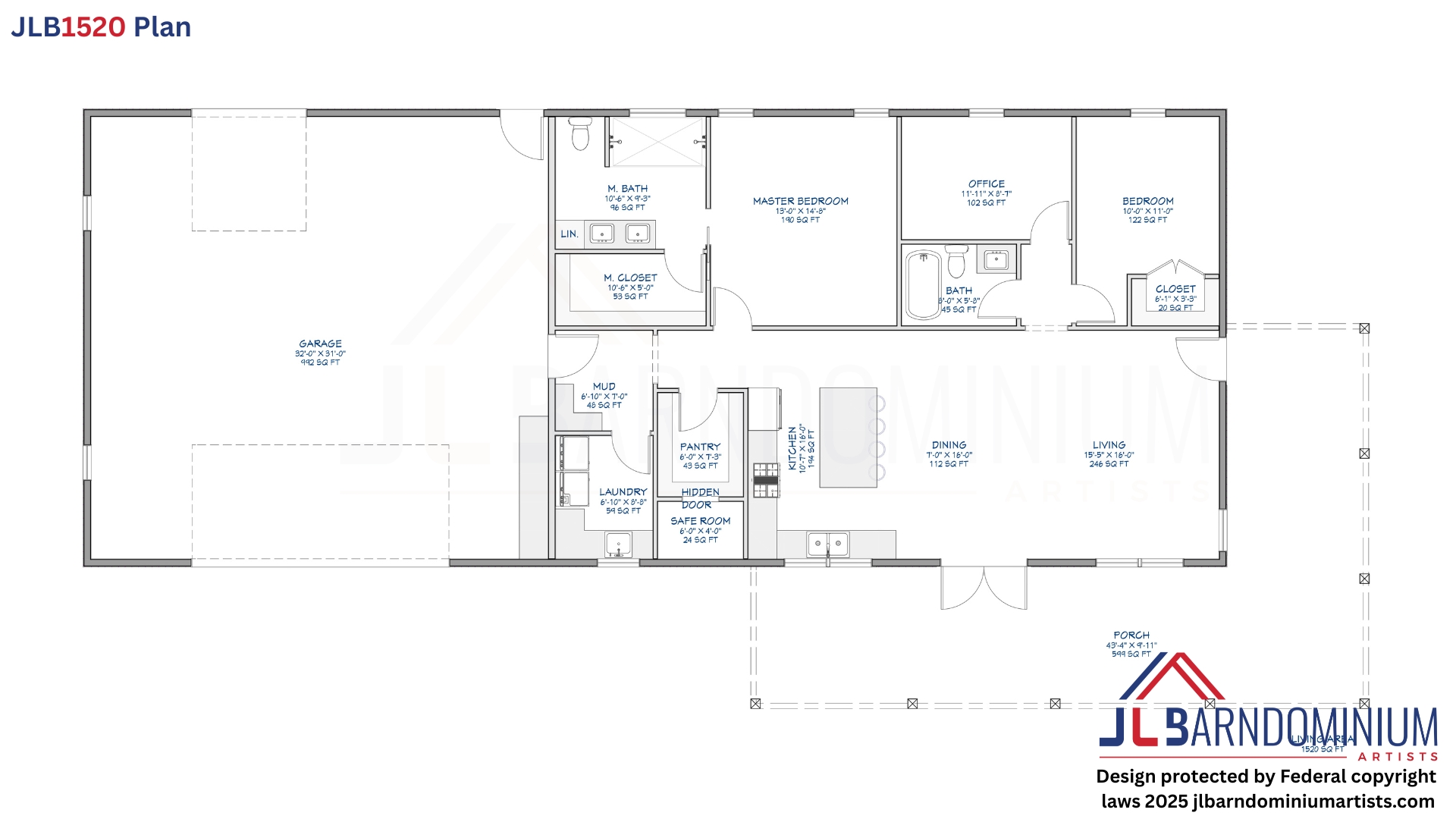 Heated Living Area: 1,520 sq. ft. (47’6” W x 32’ L)