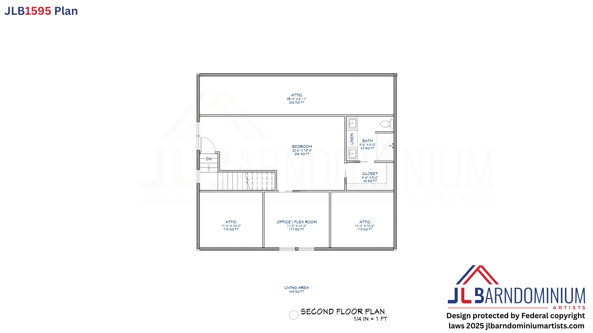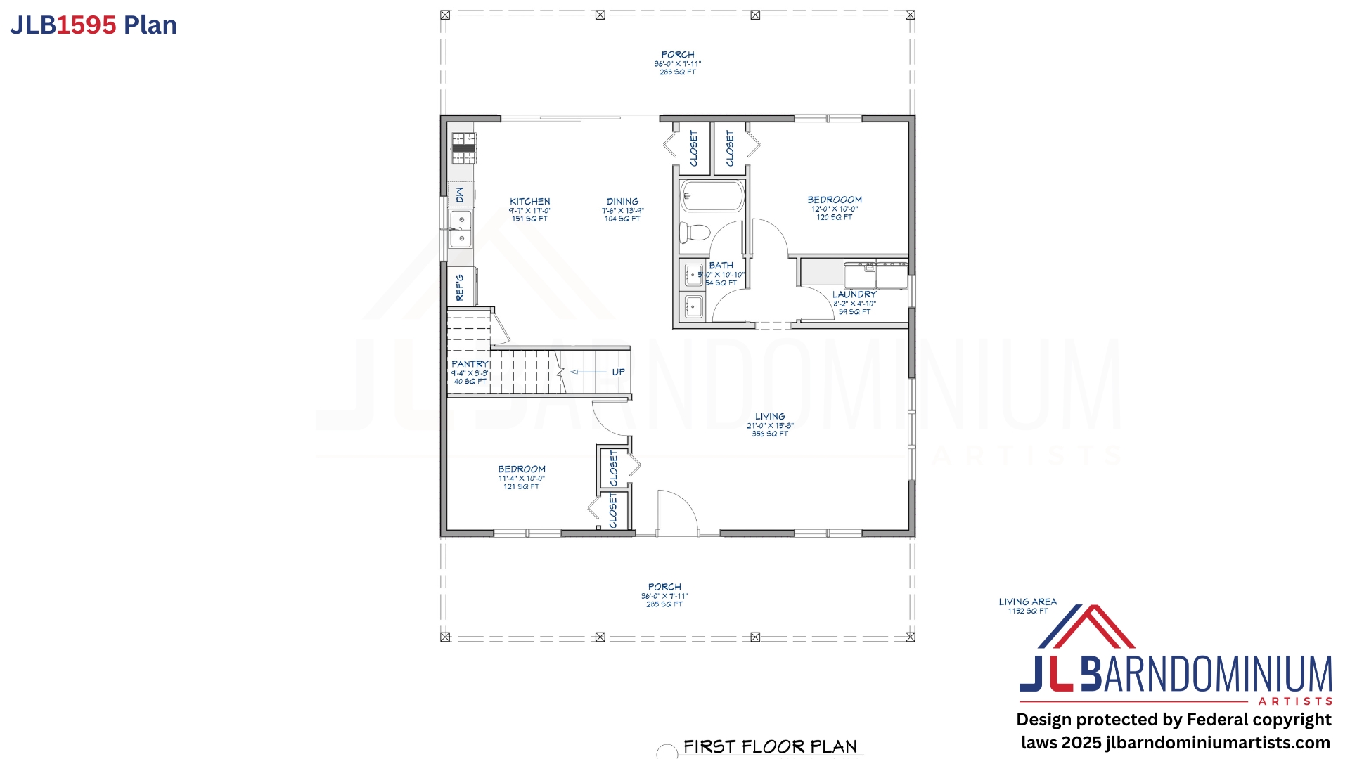 Heated Living Area: 1,595 sq. ft. (36’ W x 32’ L)