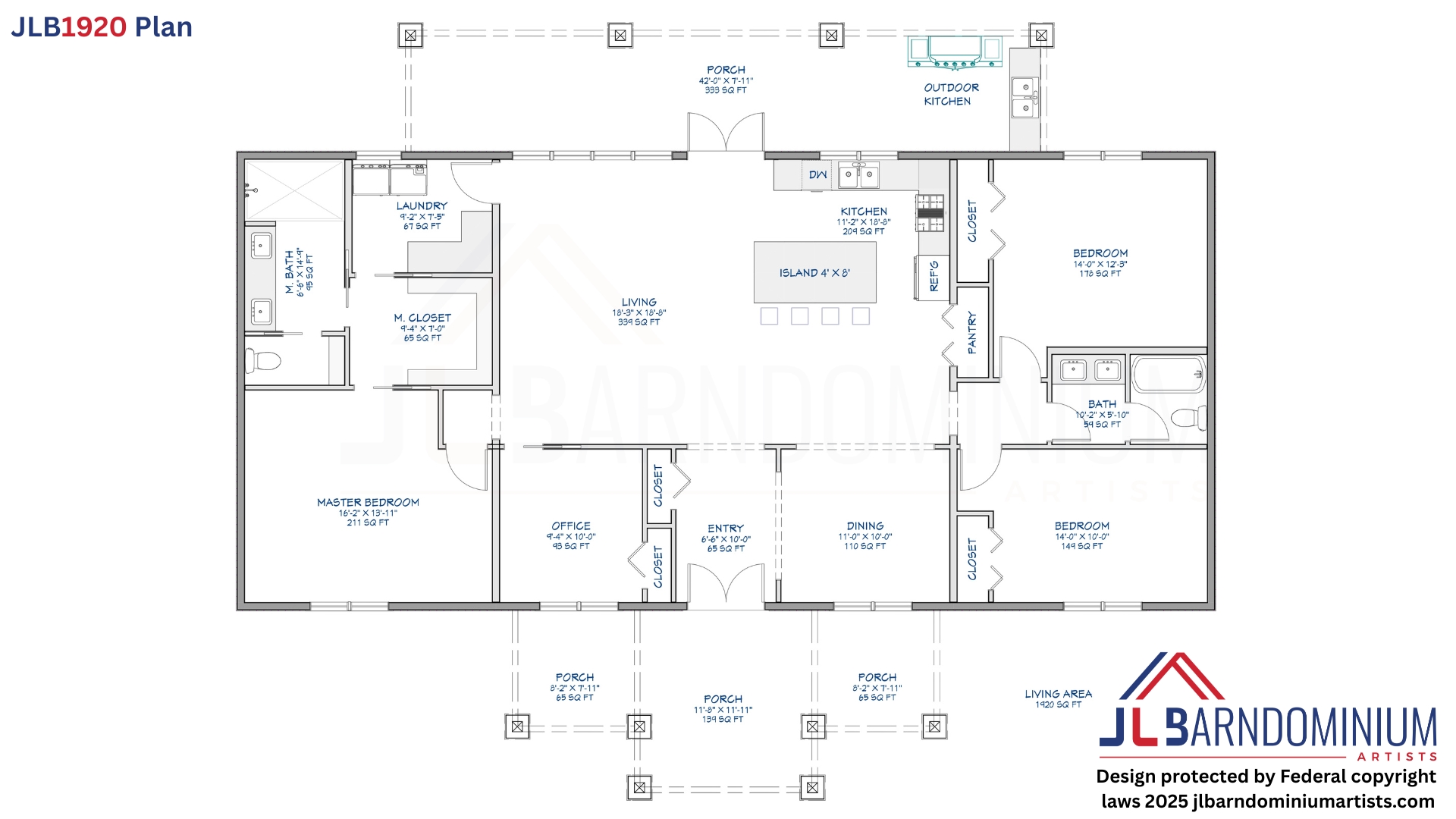 Heated Living Area: 1,920 sq. ft. (64’ W x 30’ L)