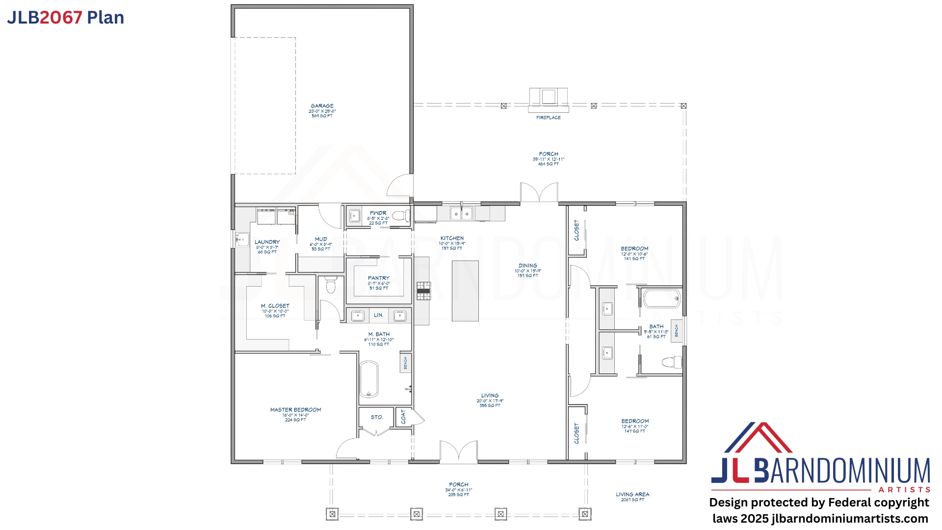 Heated Living Area: 2,067 sq. ft. (60’ W x 34’6” L)