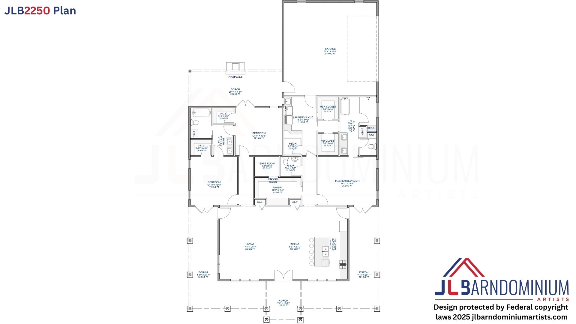 This one-story home features 2,250 sq. ft. of heated living space with 3 bedrooms, 2.5 baths, and convenient features like a pantry, laundry area, and safe room. Enjoy 1,017 sq. ft. of porches — perfect for relaxing or entertaining — and a 2-car garage (645 sq. ft.) for added functionality.