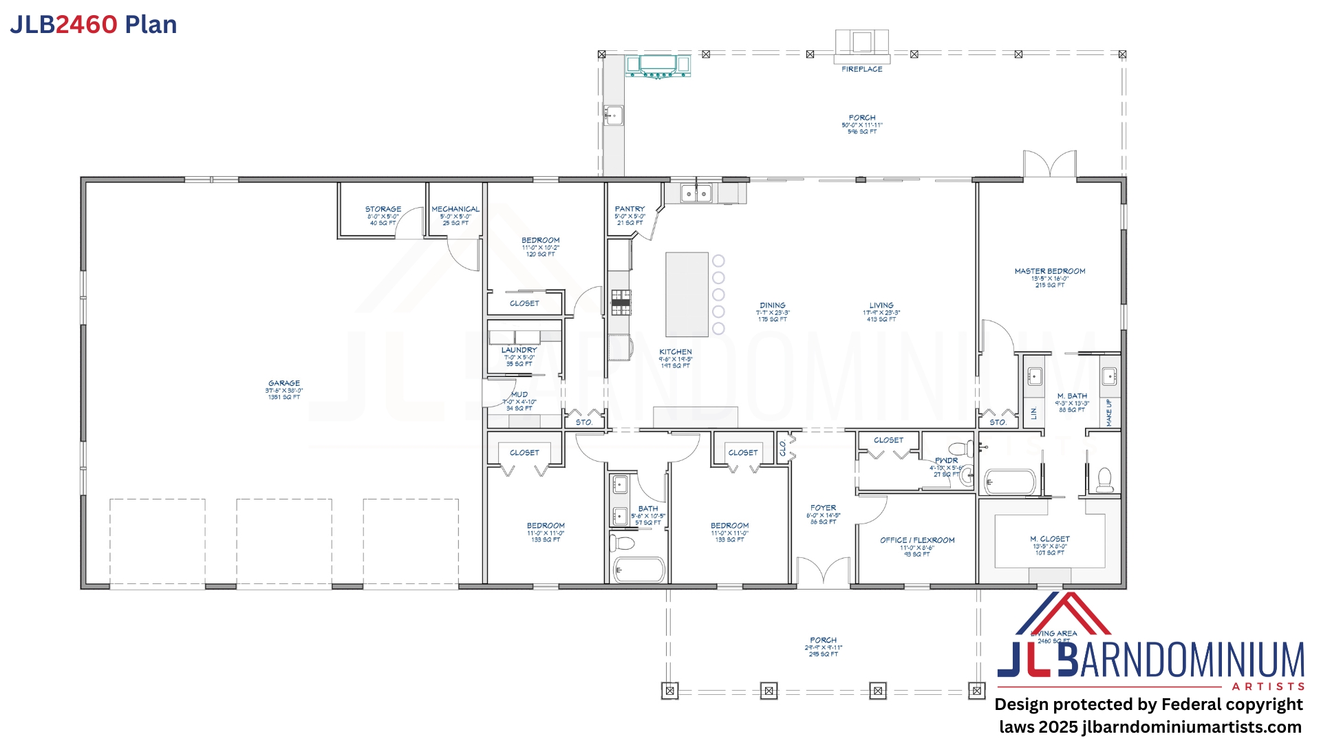 Heated Living Area: 2,460 sq. ft. (61’ W x 39’ L)