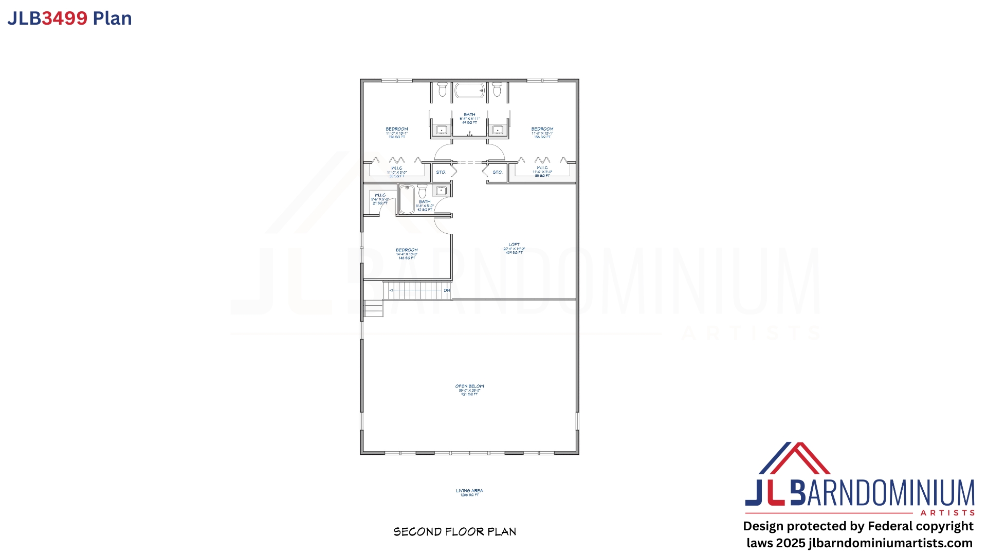 Heated Living Area: 3,499 sq. ft. (36’ W x 62’ L)