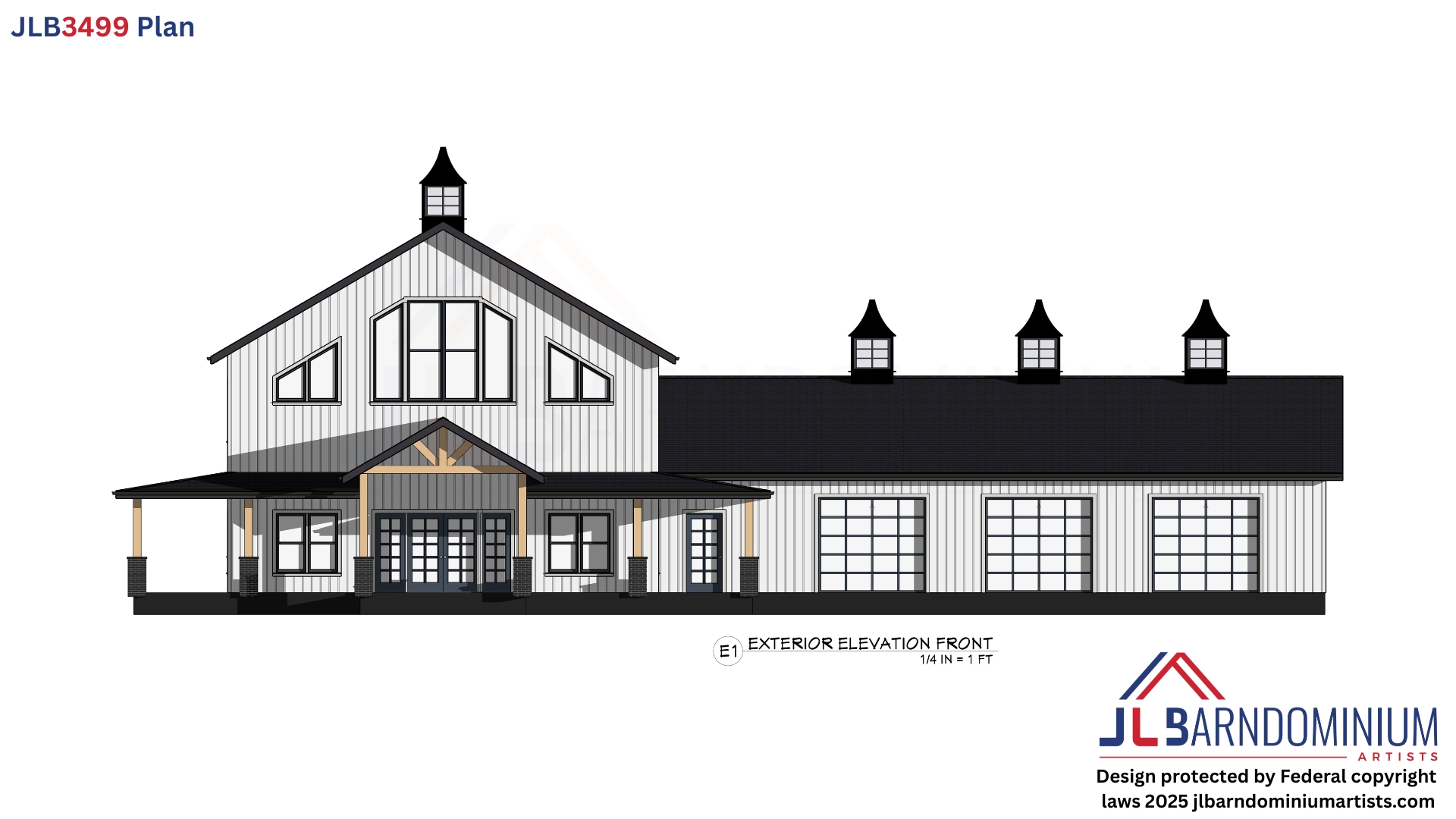 A grand farmhouse with space, charm, and modern comfort — meet Plan JLB3499.