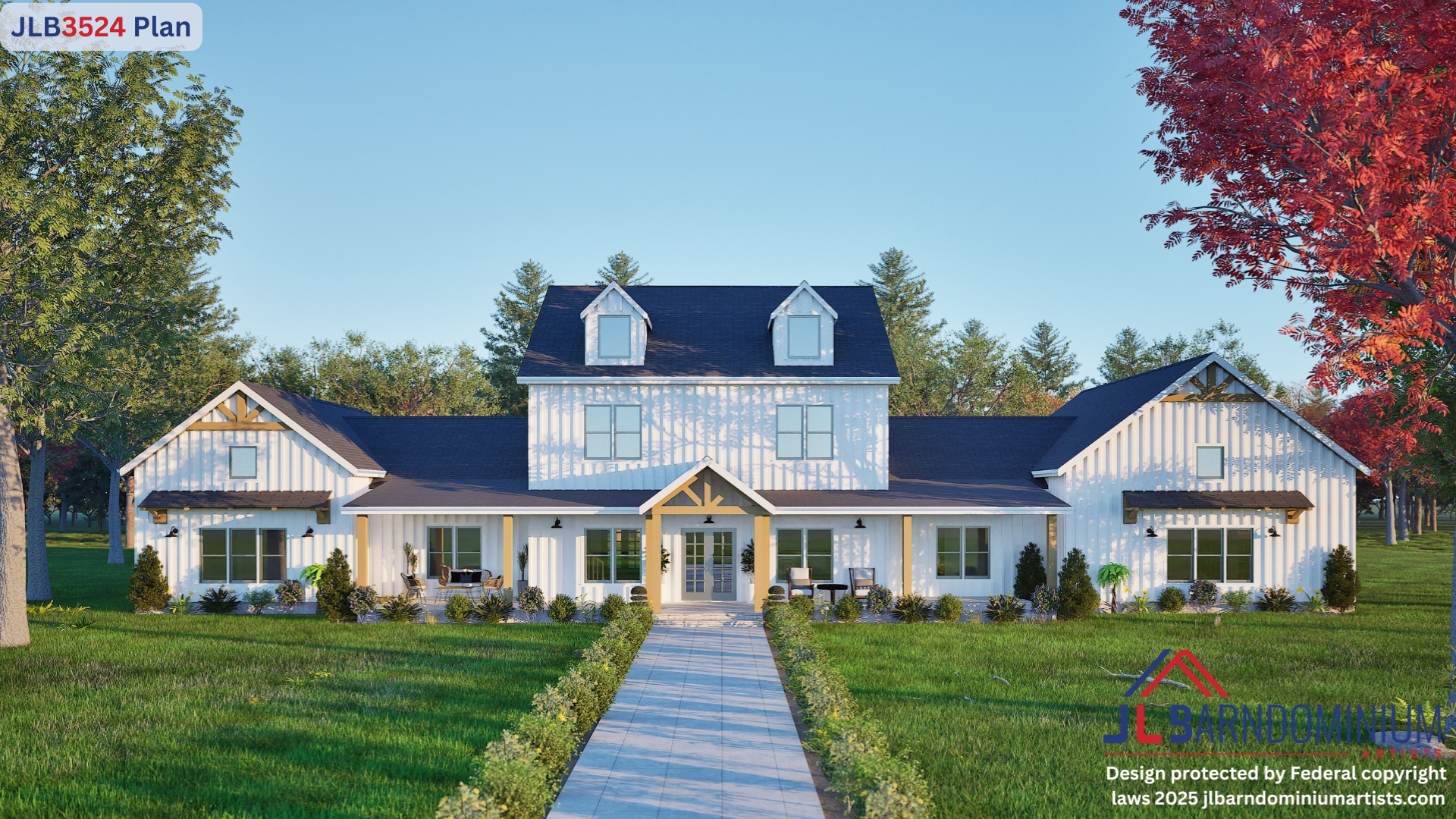 A bold blend of modern living and country charm — meet Plan JLB3524.